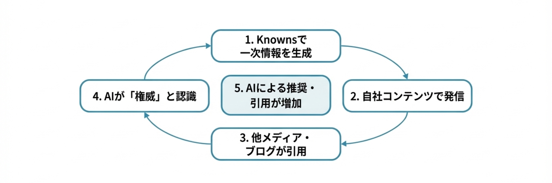 Knownsを活用して一次情報を継続的に発信することは、単に個々のコンテンツがAIに評価されるという短期的なメリットに留まりません。