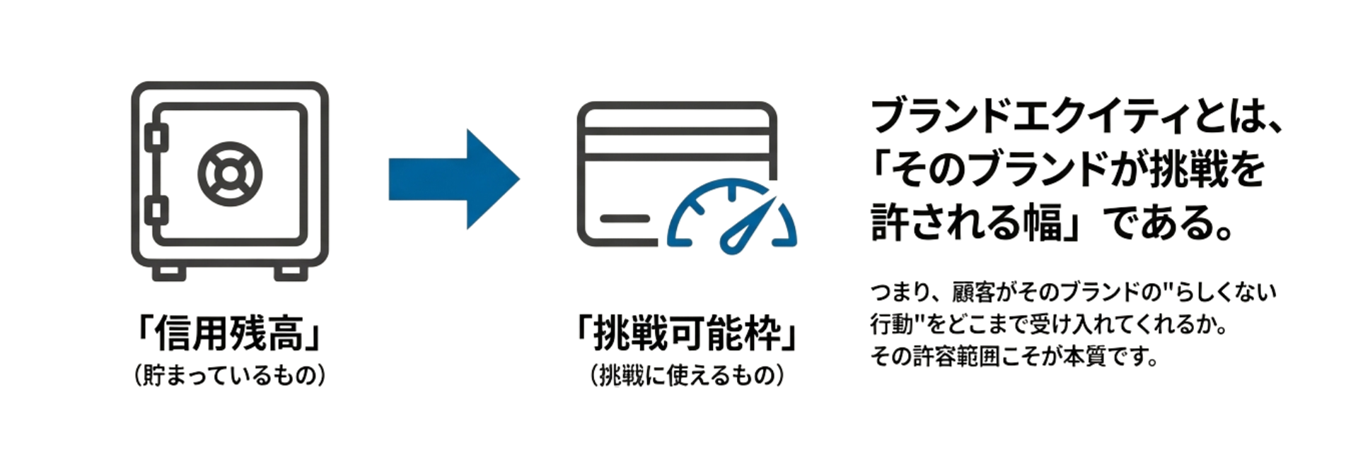 ブランドエクイティとは、「そのブランドが挑戦を許される幅」である。