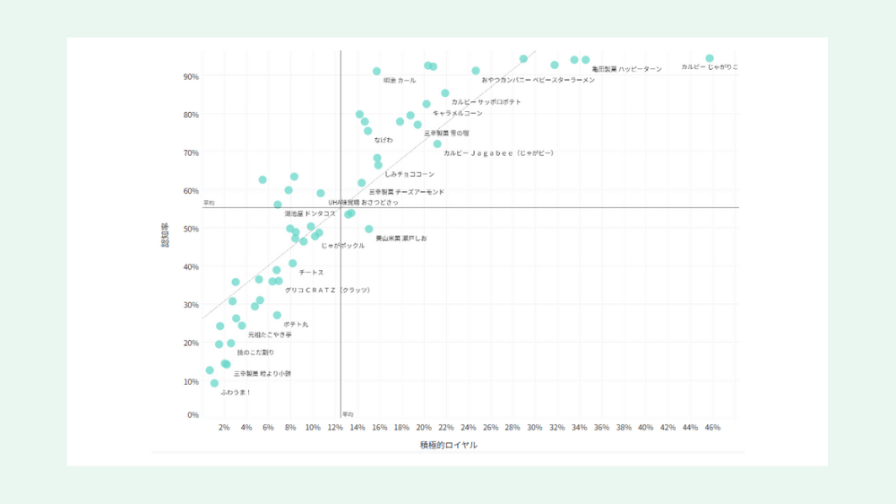 その後特定のブランドとの競合の利用状況を比較していくことでブランドが狙えるポジションを見極めていくことができます。